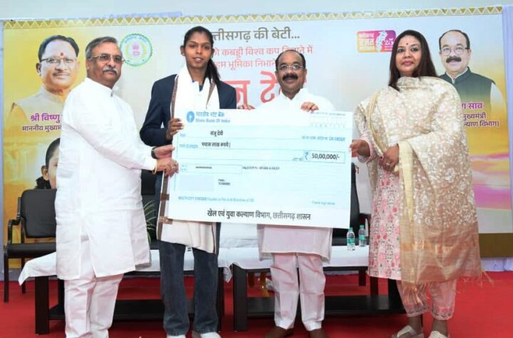 उप मुख्यमंत्री श्री अरुण साव ने सौंपा चेक, राज्य में पहली बार किसी खिलाड़ी...