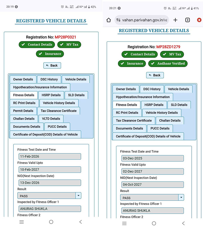 पूर्व में दैनिक भास्कर जबलपुर सहित कुछ समाचार रिपोर्टों में यह दावा किया गया था कि छिंदवाड़ा आरटीओ में पंजीकृत बस क्रमांक MP28 P 0321 का फिटनेस सर्टिफिकेट 23 नवंबर 2023 को समाप्त हो चुका है और बीमा भी वर्ष 2022 में खत्म हो गया था। हालांकि, वर्तमान जांच में इन तथ्यों को पूरी तरह निराधार पाया गया है। दस्तावेजों की वास्तविक स्थिति परिवहन विभाग के नवीनतम आंकड़ों के अनुसार, वाहनों की वास्तविक स्थिति इस प्रकार है: